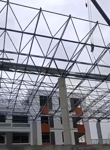 台州椒江区下陈中学风雨操场网架部分顺利结束